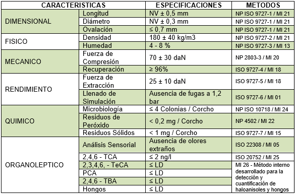Los tapones de corcho deben utilizarse durante los 6 meses posteriores a la fecha de fabricación y deben conservarse en su embalaje original hasta que se requiera su uso.